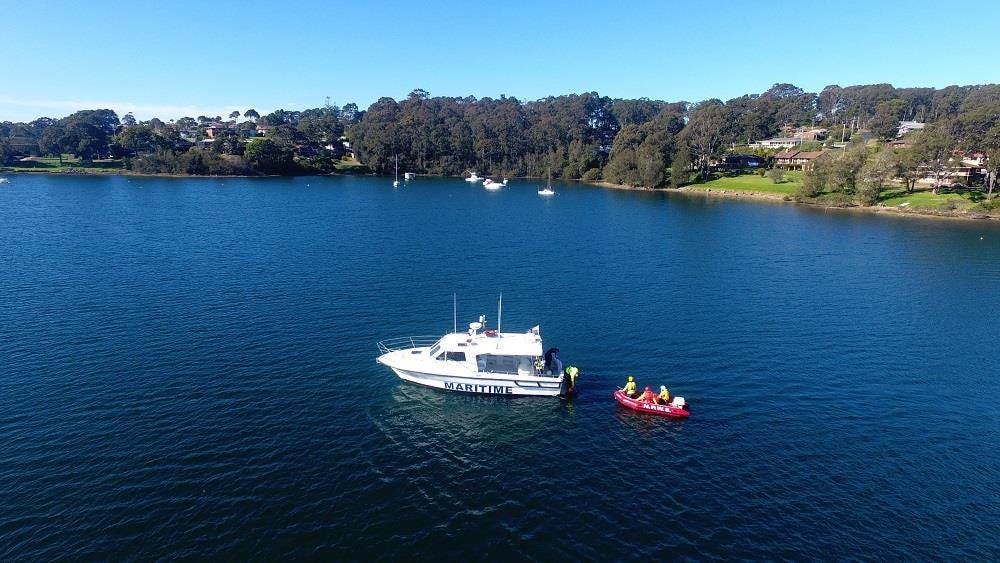 Maritime team members participated in a joint-agency exercise with NSW National Parks and Wildlife Service and the Department of Primary Industries in preparation for the upcoming whale migration along the NSW coast. A Maritime patrol boat was deployed from Batemans Bay and used as a platform for drone operations and to tow the simulated whale.